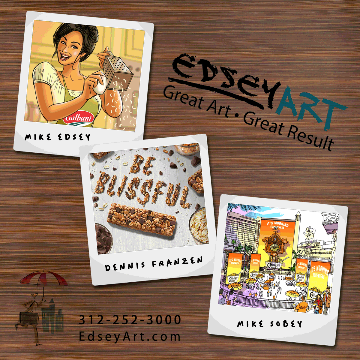 promotional GIF made for Edsey Art, featuring three of their illustrators.