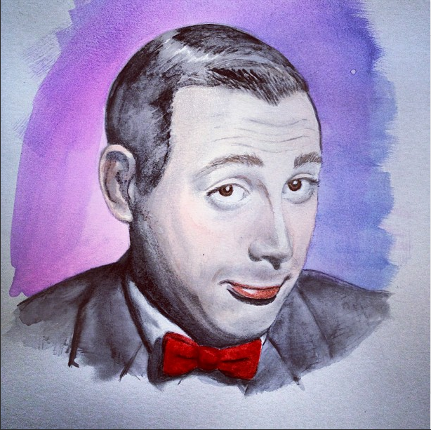 Watercolor portrait of Pee-wee Herman